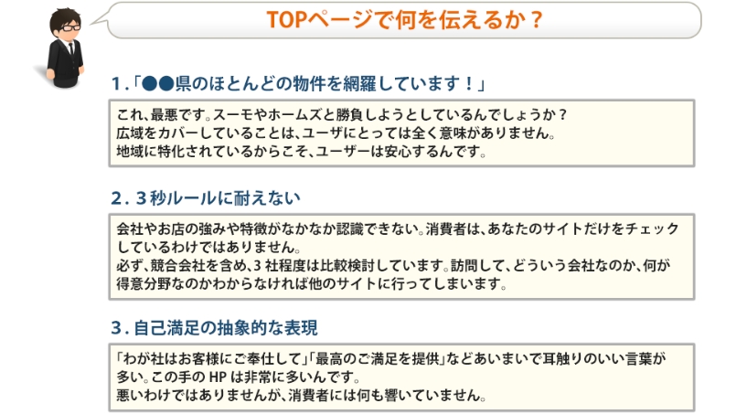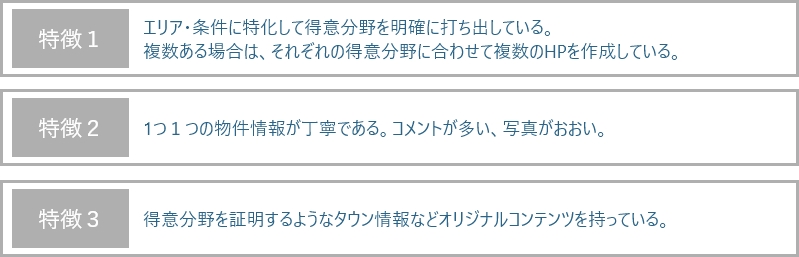 勝ち組不動産会社のサイトに共通している特徴は下記の3点。