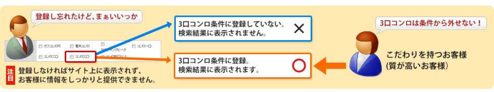 こだわり検索された際には、他社の物件が結果に表示されないため、貴社の一人勝ちになり、反響率が通常の数倍上がることがわかっています。
